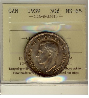 1939 50¢ ICCS MS65, lightly toned. Very nice1