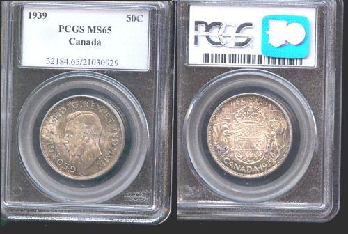 1939 50¢ PCGS MS65PQ. Superb rainbow toning over full underlying lustre.