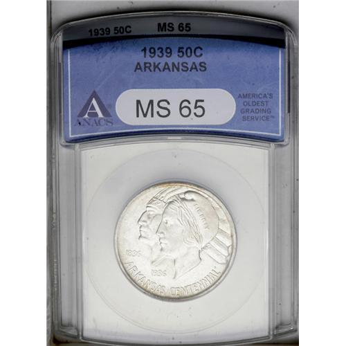 1939 50C Arkansas MS65 ANACS. Essentially untoned with 1939[50C] Arkansas MS65 ANACS.