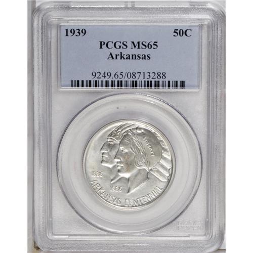 <B>1939 50C Arkansas MS65 PCGS.</B></I> An essentially untoned Gem example from the final year of this commemorative series. Just 2,104 pieces were produced, and this minimally marked piece is in the upper tier.<BR><BR><b>Shipping:</b> Coin/Currency (<a target="_blank" href="http://www.heritageauctions.com/common/shipping.php">view shipping information</a>)