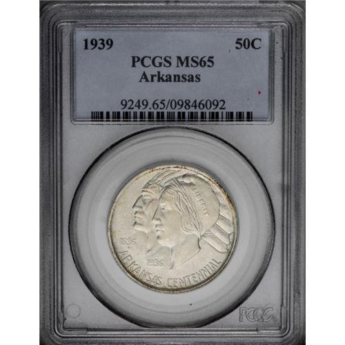 1939 50C Arkansas MS65 PCGS. Sharply impressed design 1939[50C] Arkansas MS65 PCGS.