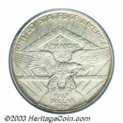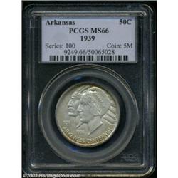 <table><tr><td><TABLE cellSpacing=0 cellPadding=0 width="100%" bgColor=#000000 border=0><TBODY> <TR><TD width="100%"><TABLE cellSpacing=1 cellPadding=3 width="100%" border=0><TBODY><TR><TD width="100%" bgColor=#79735c><FONT face=arial color=#ffffff size=3><B>Description</B> </FONT></TD></TR><TR><TD width="100%" bgColor=#ffffff><FONT face=arial size=2><B>1939 50C Arkansas MS66 PCGS.</B></I> Bits orange-gold and freckled russet toning appear about the margins of this smooth silver-gray example. A mere 2,104 pieces were struck of this final year issue. Population: 18 in 66, 1 finer (10/03). </FONT></TD></TR></TBODY></TABLE></TD></TR></TBODY></TABLE><BR><A name=PricesRealized></A><TABLE cellSpacing=0 cellPadding=0 width="100%" bgColor=#000000 border=0><TBODY><TR><TD width="100%"><TABLE cellSpacing=1 cellPadding=3 width="100%" border=0><TBODY><TR><TD width="100%" bgColor=#79735c><A name=PR><FONT face=arial color=#ffffff size=3><B>Previous Prices from Heritage Auctions</B> </FONT></A></TD></TR><TR><TD bgColor=#f6f6ed><TABLE cellSpacing=0 cellPadding=0 width="100%" border=1><TBODY><TR><TD align=middle width="33%"><B>Date</B></TD><TD align=middle width="33%"><B>Service</B></TD><TD align=middle width="33%"><B>Price</B></TD></TR><TR bgColor=whitesmoke><TD width="33%"><B>05/31/2003</B></TD><TD width="33%">PCGS</TD><TD width="33%">$2,530.00</TD></TR><TR bgColor=whitesmoke><TD width="33%"><B>04/05/2001</B></TD><TD width="33%">PCGS</TD><TD width="33%">$2,472.50</TD></TR></TBODY></TABLE></TD></TR><TR><TD bgColor=#ffffff><FONT face=arial size=1 ?>PLEASE NOTE: All prices realized reflect the final hammer price PLUS the buyer's premium in auctions that charge a buyer's premium. Each item has a notation at the top of the listing indicating whether that lot included a buyer's premium. Example: A item that sells with a final hammer price of $100 and a 20% buyer's premium will display with a price realized of $120. All information listed is intended to be as accurate as possible, but errors are possible. Please use this guide carefully and inform us of any inaccuracies. </FONT></TD></TR></TBODY></TABLE></TD></TR></TBODY></TABLE><BR><TABLE cellSpacing=0 cellPadding=0 width="100%" bgColor=#000000 border=0><TBODY><TR><TD width="100%"><TABLE cellSpacing=1 cellPadding=3 width="100%" border=0><TBODY><TR><TD width="100%" bgColor=#79735c colSpan=6><FONT face=arial color=#ffffff size=3><B>Price Guide*</B> </FONT></TD></TR><TR bgColor=#f6f6ed><TD align=middle><B>Grade</B> </TD><TD align=middle><B>Coin World<BR>(Trends)</B> </TD><TD align=middle><B>Numismedia<BR>Retail</B> </TD><TD align=middle><B>Numismedia<BR>Wholesale</B> </TD><TD align=middle><B>Coin<BR>Universe</B> </TD><TD align=middle><B>Heritage<BR>Value Index</B> </TD></TR><TR bgColor=#ffffff><TD align=middle>65</TD><TD align=right>---</TD><TD align=right>$970.00</TD><TD align=right>$775.00</TD><TD align=right>$1,250.00</TD><TD align=right>$158.00</TD></TR><TR style="FONT-WEIGHT: bold" bgColor=#cccfdd><TD align=middle>66</TD><TD align=right>---</TD><TD align=right>---</TD><TD align=right>$2,475.00</TD><TD align=right>$4,750.00</TD><TD align=right>$500.00</TD></TR><TR bgColor=#ffffff><TD align=middle>67</TD><TD align=right>---</TD><TD align=right>---</TD><TD align=right>---</TD><TD align=right>$16,500.00</TD><TD align=right>---</TD></TR><TR bgColor=#ffffff><TD colSpan=6><FONT size=1>*All information listed is intended to be as accurate as possible, but errors are possible. No item may be returned or refused based on this information which is provided as a service to our customers. You should contact each pricing source directly to determine the accuracy of this information. </FONT></TD></TR></TBODY></TABLE></TD></TR></TBODY></TABLE><BR><TABLE cellSpacing=0 cellPadding=0 width="100%" bgColor=#000000 border=0><TBODY><TR><TD width="100%"><TABLE cellSpacing=1 cellPadding=3 width="100%" border=0><TBODY><TR><TD width="100%" bgColor=#79735c><FONT face=arial color=#ffffff size=3><B>Population Guide</B> </FONT></TD></TR><TR bgColor=#ffffff><TD align=middle><!-- Begin Output of Population Grid--><TABLE cellSpacing=0 cellPadding=0 width="100%" border=0><TBODY><TR><TD vAlign=center><TABLE cellSpacing=0 width="100%" border=1 cellsadding="3"><TBODY><TR><TD vAlign=center><TABLE cellSpacing=0 cellPadding=3 width="100%" border=1><TBODY><TR><TD vAlign=center align=middle bgColor=#f0f1e8 colSpan=2 <CENTER><FONT face=Arial size=2><B>PCGS Pop </B></FONT><CENTER></CENTER></TD><TD vAlign=center align=middle bgColor=#f0f1e8 colSpan=2><CENTER><FONT face=Arial size=2><B>NGC Pop</B></CENTER></FONT></TD></TR><TR><TD vAlign=center><FONT face=Arial size=2>(66)</FONT> </TD><TD vAlign=center align=right><FONT face=Arial size=2>18</FONT> </TD><TD vAlign=center><FONT face=Arial size=2>(66)</FONT> </TD><TD vAlign=center align=right><FONT face=Arial size=2>9</FONT> </TD></TR><TR><TD vAlign=center><FONT face=Arial size=2>(>66)</FONT> </TD><TD vAlign=center align=right><FONT face=Arial size=2>1</FONT> </TD><TD vAlign=center><FONT face=Arial size=2>(>66)</FONT> </TD><TD vAlign=center align=right><FONT face=Arial size=2>0</FONT> </TD></TR></TBODY></TABLE></TD></TR></TBODY></TABLE></TD></TR></TBODY></TABLE><!-- End Output of Population Grid--></TD></TR></TBODY></TABLE></TD></TR></TBODY></TABLE><BR><TABLE cellSpacing=0 cellPadding=0 width="100%" bgColor=#000000 border=0><TBODY><TR> Important notice: Heritage usually auctions material at the rate of 200-250 lots per hour. On some occasions eBay Live bid software or the Internet may not be able to keep up with the pace of the auction. We recommend placing a realistic absentee bid now as insurance to avoid disappointment. Occasionally the auctioneer may eliminate or reject an eBay Live bid, and the auctioneer may also reopen a lot after the close of the eBay live bidding (usually because we missed an audience bid), and may reject your bid even if it shows you as the winning bidder. By bidding via eBay Live, you agree that Heritage may award the lot to anot