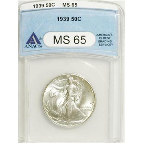 <B>1939 50C MS65 ANACS.</B></I> NGC Census: (1021/868). PCGS Population (1444/1199). Mintage: 6,820,808. Numismedia Wsl. Price for NGC/PCGS coin in MS65: $190. (#6606)<BR><BR><B>Coin Engraver:</B> Adolph A. Weinman<BR><BR><b>Shipping:</b> Coins & Currency (<a target="_blank" href="http://www.heritageauctions.com/common/shipping.php">view shipping information</a>)