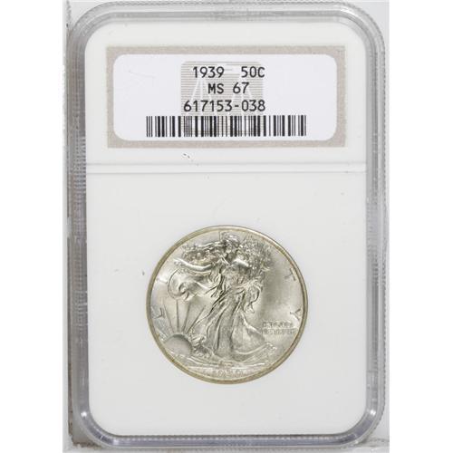 1939 50C MS67 NGC. The highly lustrous surfaces of thi