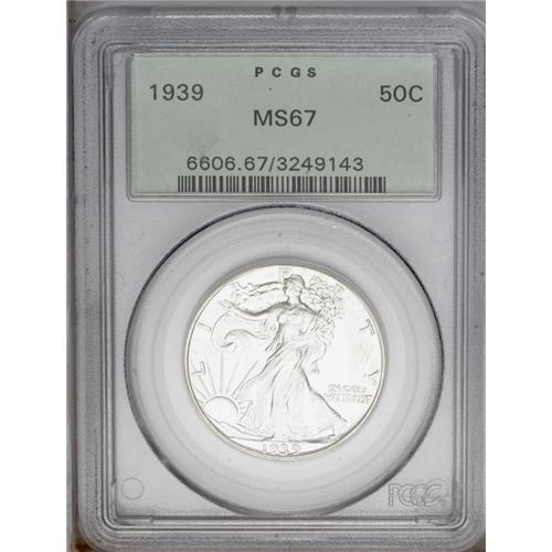 1939 50C MS67 PCGS. Flashy luster envelopes each side 1939[50C] MS67 PCGS.