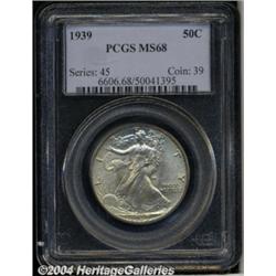 <B>1939<50C> MS68 PCGS.</B></I> Fully struck and as nearly flawless as it is possible to find a business strike Walker. The mint luster is bright, with each side accented by light golden toning around the margins. Truly an exceptional type coin. Population: 19 in 68, 0 finer (3/04).<BR><I>From The Del Rio Collection, Part Two.</B></I> <BR><BR><B>Important notice:</B> Heritage usually auctions material at the rate of 200-250 lots per hour. On some occasions eBay Live bid software or the Internet may not be able to keep up with the pace of the auction. We recommend placing a realistic absentee bid now as insurance to avoid disappointment. Occasionally the auctioneer may eliminate or reject an eBay Live bid, and the auctioneer may also reopen a lot after the close of the eBay live bidding (usually because we missed an audience bid), and may reject your bid even if it shows you as the winning bidder. By bidding via eBay Live, you agree that Heritage may award the lot to another bidder at its sole discretion under the circumstances described above or any other reasonable circumstances. Since eBay bids are not shown to us until we open the lot on the floor, we treat those bids just like floor bids. In most cases the floor responds before the eBay bid is presented to us, due to Internet lag time, so for consistency we have made it a policy that floor bids are always considered first over tie eBay live bids. Also please note that all Heritage lots purchased through eBay Live carry a 20% Buyer's Premium. Please make sure you read the Terms and Conditions before you bid. </span></font></tr></table></td></tr></table>