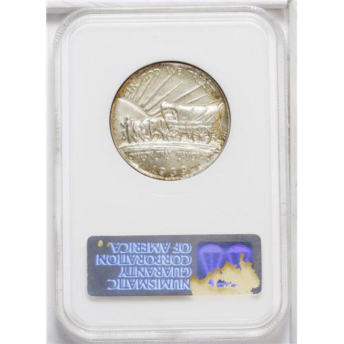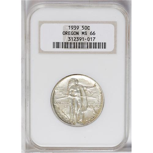 <B>1939<50C> Oregon MS66 NGC.</B></I> A solidly struck and lustrous dove-gray example with mustard-orange patina at the upper right of the obverse. The fields are quite clean. Encased in an earlier generation holder.