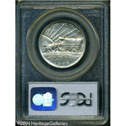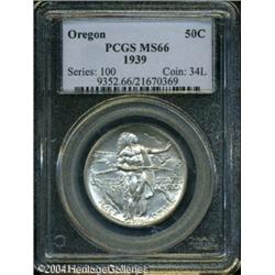 1939 50C Oregon MS66 PCGS. Silver-gray patina reve <B>1939 50C Oregon MS66 PCGS.</B></I> Silver-gray patina reveals subtle pale-blue undertones over fully lustrous surfaces, and sharply impressed motifs characterize each side. A few tiny milling marks occur on the Indian's blanket and left arm. <BR><BR><B>Important notice:</B> Heritage usually auctions material at the rate of 200-250 lots per hour. On some occasions eBay Live bid software or the Internet may not be able to keep up with the pace of the auction. We recommend placing a realistic absentee bid now as insurance to avoid disappointment. Occasionally the auctioneer may eliminate or reject an eBay Live bid, and the auctioneer may also reopen a lot after the close of the eBay live bidding (usually because we missed an audience bid), and may reject your bid even if it shows you as the winning bidder. By bidding via eBay Live, you agree that Heritage may award the lot to another bidder at its sole discretion under the circumstances described above or any other reasonable circumstances. Since eBay bids are not shown to us until we open the lot on the floor, we treat those bids just like floor bids. In most cases the floor responds before the eBay bid is presented to us, due to Internet lag time, so for consistency we have made it a policy that floor bids are always considered first over tie eBay live bids. Also please note that all Heritage lots purchased through eBay Live carry a 20% Buyer's Premium. Please make sure you read the Terms and Conditions before you bid. This lot is being auctioned in conjunction with a live floor auction by Heritage Galleries & Auctioneers. All final auction and invoice information will be supplied by Heritage Galleries & Auctioneers, and all other information should be considered preliminary. Lot:7931