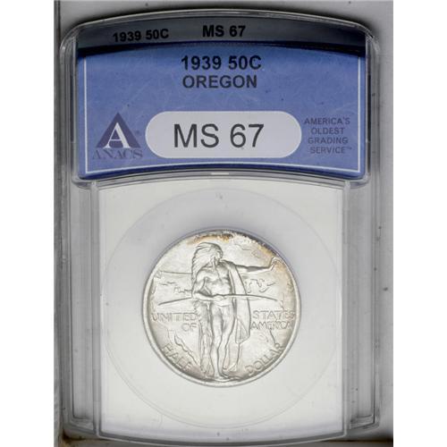 1939 50C Oregon MS67 ANACS. A vibrant silver-gray repr 1939[50C] Oregon MS67 ANACS.