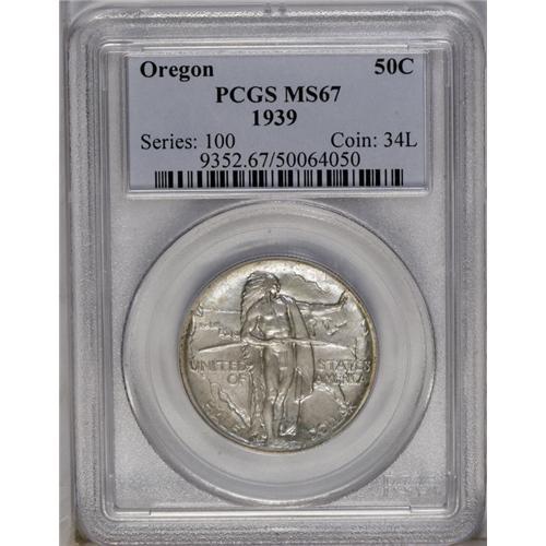 <B>1939<50C> Oregon MS67 PCGS.</B></I> A Superb Gem example of the final year of issue for this long-lived commemorative series, which began in 1926. Subdued satin luster beneath light ivory color. Population: 60 in 67, 4 finer (5/06).
