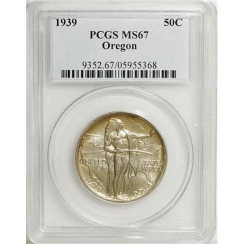 <B>1939 SET Oregon PDS Set MS66 to MS67 PCGS.</B></I> The set includes: <B>1939 MS67</B></I>, satiny and silky-smooth with golden peripheral accents; <B>1939-D MS66</B></I>, lustrous, untoned centers give way to attractive golden toning at the borders; and a <B>1939-S MS66</B></I>, much like the preceding, but with a more satiny appearance. <BR><BR><b>Shipping:</b> Coins & Currency (<a target="_blank" href="http://www.heritageauctions.com/common/shipping.php">view shipping information</a>\)