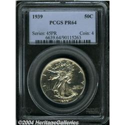<B>1939<50C> PR64 PCGS.</B></I> A great coin for the budget minded collector, this untoned near-Gem proof is deeply mirrored with several light wispy hairlines in the right obverse field that detract from the coin's grade. <BR><BR><B>Important notice:</B> Heritage usually auctions material at the rate of 200-250 lots per hour. On some occasions eBay Live bid software or the Internet may not be able to keep up with the pace of the auction. We recommend placing a realistic absentee bid now as insurance to avoid disappointment. Occasionally the auctioneer may eliminate or reject an eBay Live bid, and the auctioneer may also reopen a lot after the close of the eBay live bidding (usually because we missed an audience bid), and may reject your bid even if it shows you as the winning bidder. By bidding via eBay Live, you agree that Heritage may award the lot to another bidder at its sole discretion under the circumstances described above or any other reasonable circumstances. Since eBay bids are not shown to us until we open the lot on the floor, we treat those bids just like floor bids. In most cases the floor responds before the eBay bid is presented to us, due to Internet lag time, so for consistency we have made it a policy that floor bids are always considered first over tie eBay live bids. Also please note that all Heritage lots purchased through eBay Live carry a 20% Buyer's Premium. Please make sure you read the Terms and Conditions before you bid. </span></font></tr></table></td></tr></table>
