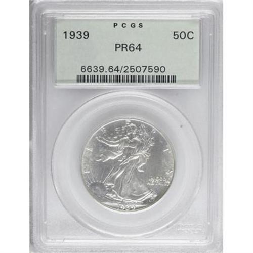 <B>1939 50C PR64 PCGS.</B></I> PCGS Population (542/1737). NGC Census: (250/1352). Mintage: 8,808. Numismedia Wsl. Price for NGC/PCGS coin in PR64: $650. (#6639)<BR><BR><B>Coin Engraver:</B> Adolph A. Weinman<BR><BR><b>Shipping:</b> Coins & Currency (<a target="_blank" href="http://www.heritageauctions.com/common/shipping.php">view shipping information</a>\)