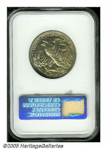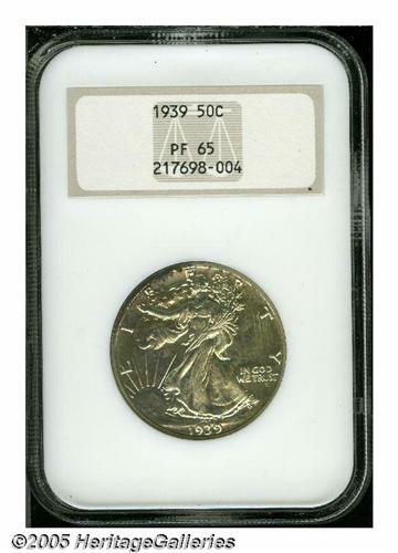 <B>1939<50C> PR65 NGC.</B></I> Hints of light patina are seen throughout and a dash of speckled brown toning touches the obverse border from 9 o'clock to 12 o'clock.