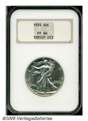 <B>1939<50C> PR66 NGC.</B></I> Bright proof surfaces display touches of mottled milky patina over each side, and are devoid of any mentionable contact marks. The design features are expectantly boldly defined.<BR><I>From The Clifford Columbus Collection.</B></I>