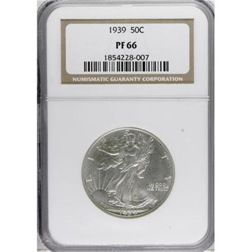 <B>1939 50C PR66 NGC.</B></I> Pale, hazy patina is seen over each side, but it does not impair the strong flash from the deeply mirrored fields. An immaculate type coin.<B><BR></B></I><I>From The Vanek Collection.</B></I><BR><BR><b>Shipping:</b> Coins & Currency (<a target="_blank" href="http://www.heritageauctions.com/common/shipping.php">view shipping information</a>)