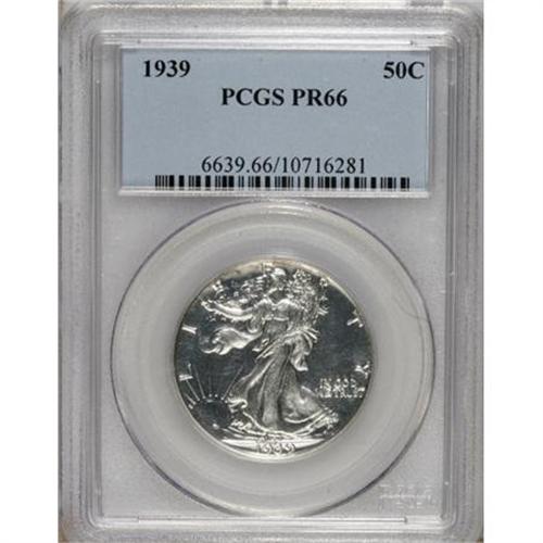 <B>1939 50C PR66 PCGS.</B></I> This needle-sharp Premium Gem appears fully brilliant at first glance, but delicate russet freckles cling to the reverse periphery. The immaculate fields are impressively mirrored, and the devices exhibit noticeable frost.<BR><BR><b>Shipping:</b> Coins & Currency (<a target="_blank" href="http://www.heritageauctions.com/common/shipping.php">view shipping information</a>)