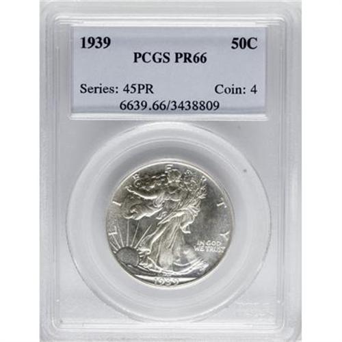 <B>1939 50C PR66 PCGS.</B></I> The otherwise brilliant surfaces show a slight degree of haze in the right obverse field. The depth of mirrored reflectivity is such that the light frost on the devices provides a modest cameo effect on both sides. <BR><I>From The Vanek Collection.</B></I><BR><BR><b>Shipping:</b> Coins & Currency (<a target="_blank" href="http://www.heritageauctions.com/common/shipping.php">view shipping information</a>)