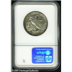 <B>1939 50C PR67 NGC.</B></I> Exquisitely preserved surfaces display aquamarine, crimson, and golden-brown patina at the obverse border, while the reverse border exhibits just a whisper of light color. Lot:8232