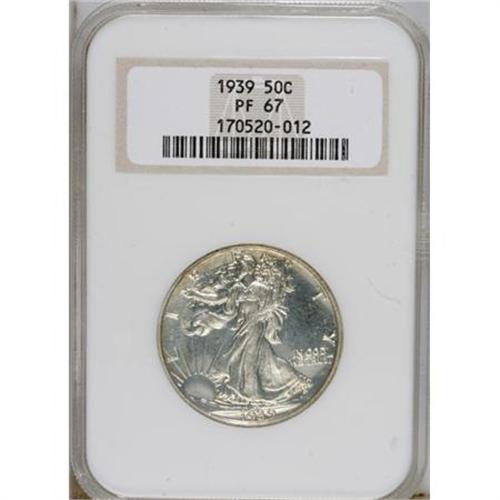 <B>1939 50C PR67 NGC.</B></I> A lightly toned and pinpoint-sharp Superb Gem. The mintage is lower than the three proof issues from the 1940s. Housed in a prior generation holder.<BR><BR><b>Shipping:</b> Coins & Currency (<a target="_blank" href="http://www.heritageauctions.com/common/shipping.php">view shipping information</a>)