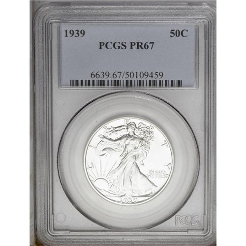 <B>1939<50C> PR67 PCGS.</B></I> Fully struck and impeccably preserved with watery, highly reflective fields and pristine devices. Exceptional quality that must be seen to be appreciated.