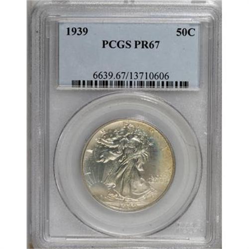 <B>1939 50C PR67 PCGS.</B></I> An exquisitely struck Superb Gem, this delightful proof Walker has strongly reflective centers, though rich olive-tan toning covers the peripheries. One of only 8,808 specimens struck.<BR><BR><B>Coin Engraver:</B> Adolph A. Weinman<BR><BR><b>Shipping:</b> Coins & Currency (<a target="_blank" href="http://www.heritageauctions.com/common/shipping.php">view shipping information</a>)