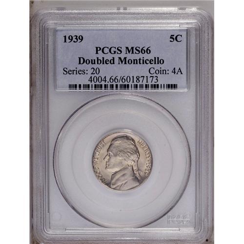 1939 5C Doubled MONTICELLO MS66 PCGS. FS-022. FIVE CEN 1939[5C] Doubled MONTICELLO MS66 PCGS.
