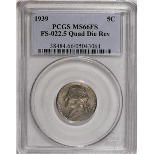 <B>1939 5C Reverse of 1940 MS66 Full Steps PCGS.</B></I> FS-022.5. The lower reverse legends have an inordinately stretched appearance, especially the S in CENTS and the final O in MONTICELLO. A strong loupe reveals multiple die doubling. This satiny Premium Gem has light gold toning and uncommonly smooth surfaces.<BR><BR><B>Coin Engraver:</B> Felix Schlag<BR><BR><b>Shipping:</b> Coins & Currency (<a target="_blank" href="http://www.heritageauctions.com/common/shipping.php">view shipping information</a>)