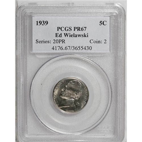<B>1939<5C> Reverse of 1938 PR67 PCGS.</B></I> Ex: Ed Wielawski. This aqua and pea green specimen has the deep mirrors and practically immaculate surfaces demanded of a Superb Gem. Highly deserving of the grade.