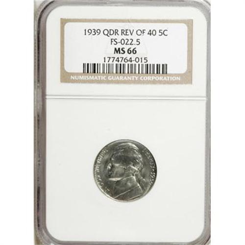 <B>1939 5C Reverse of 1940 MS66 NGC.</B></I> Quadruple Die Reverse. FS-022.5.<BR><BR><B>Coin Engraver:</B> Felix Schlag<BR><BR><b>Shipping:</b> Coins & Currency (<a target="_blank" href="http://www.heritageauctions.com/common/shipping.php">view shipping information</a>)