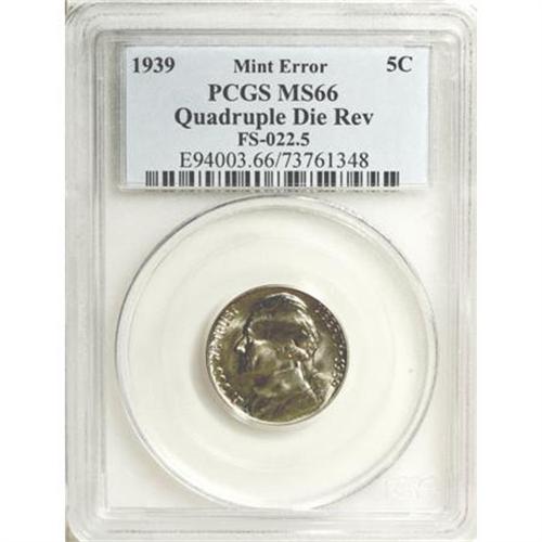 <B>1939 5C Reverse of 1940 MS66 PCGS.</B></I> Quadruple Die Reverse FS-022.5. PCGS Population (410/14). NGC Census: (0/0). (#94003)<BR><BR><B>Coin Engraver:</B> Felix Schlag<BR><BR><b>Shipping:</b> Coins & Currency (<a target="_blank" href="http://www.heritageauctions.com/common/shipping.php">view shipping information</a>)