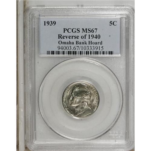 1939 5C Reverse of 1940 MS67 PCGS. Ex: Omaha Bank Hoar