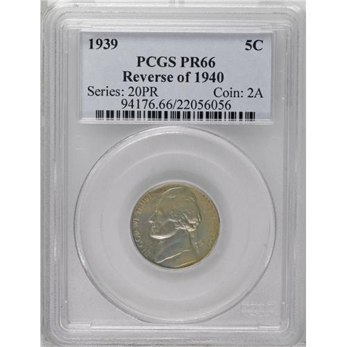 1939 5C Reverse of 1940 PR66 PCGS. Thick olive-gold pa
