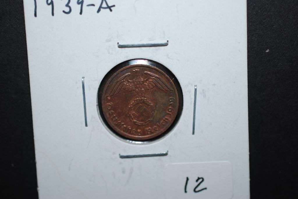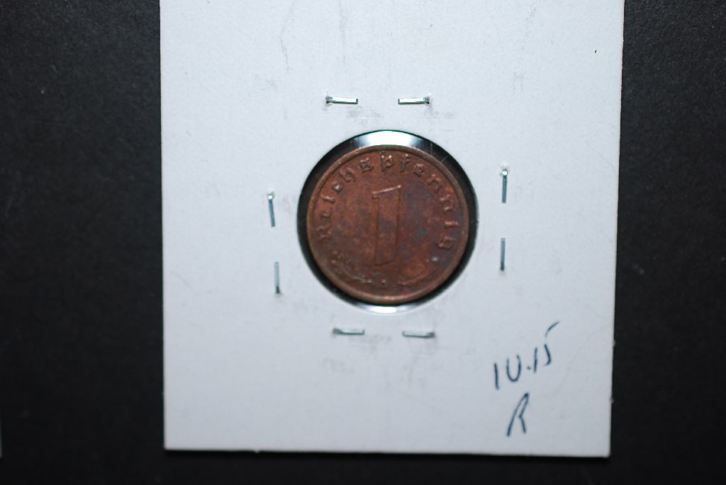 1939-A German 1 Reichspfennig Foreign Coin With Flying Eagle Holding Swatstika; EST. $10-15