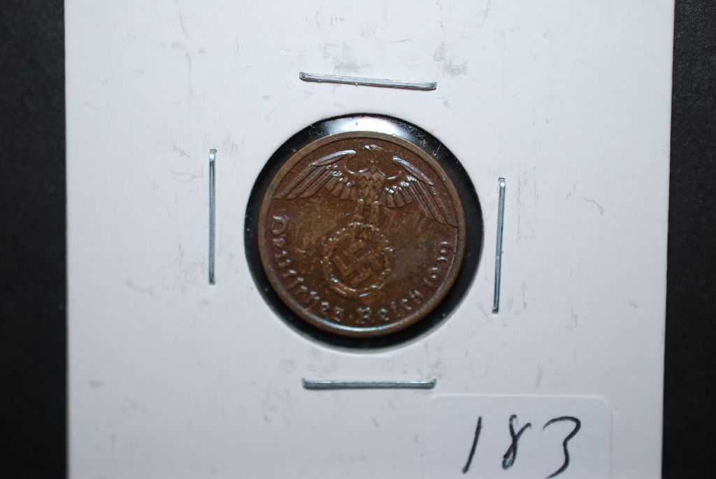 1939-A German 1 Reichspfennig Foreign Coin With Flying Eagle Holding Swatstika; EST. $10-15