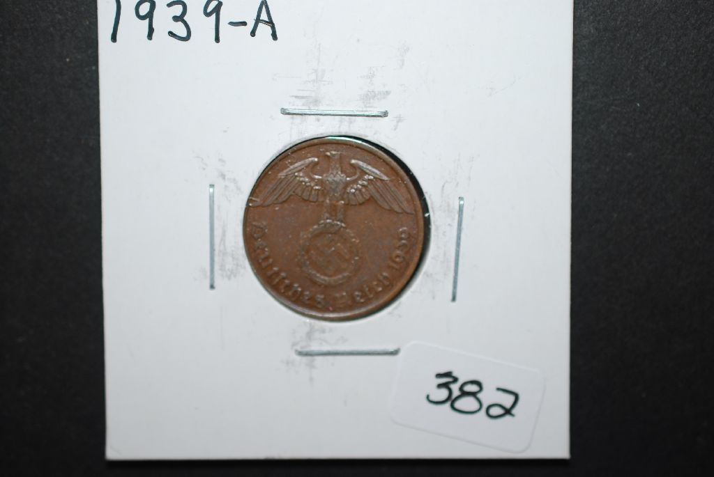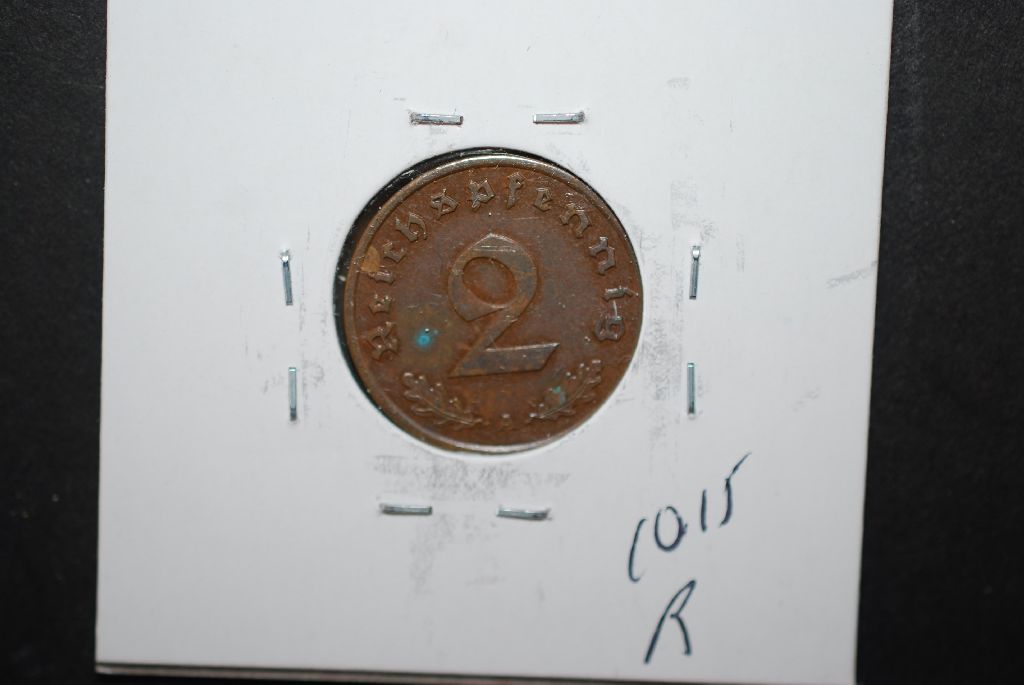 1939-A German 2 Reichspfennig Foreign Coin With Flying Eagle Holding Swatstika; EST. $10-15