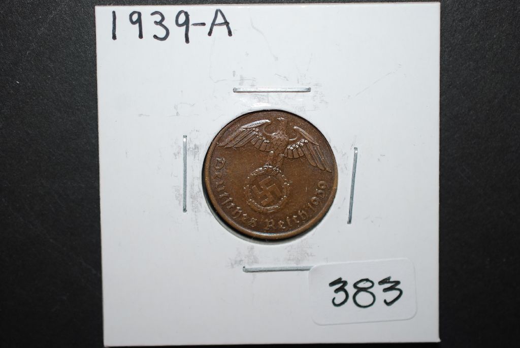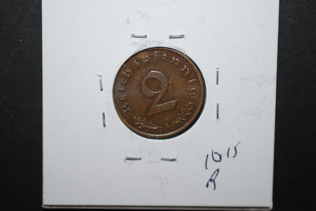 1939-A German 2 Reichspfennig Foreign Coin With Flying Eagle Holding Swatstika; EST. $10-15