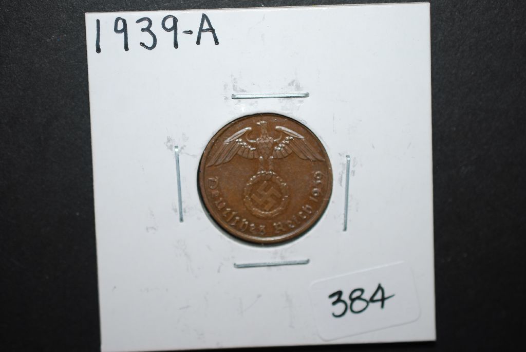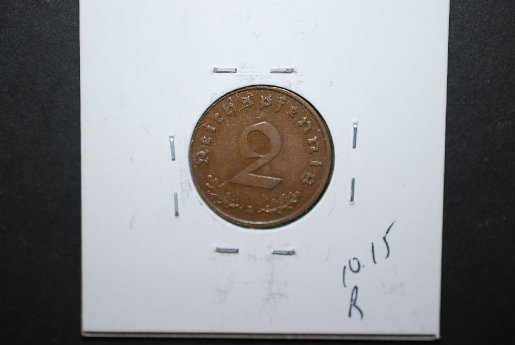 1939-A German 2 Reichspfennig Foreign Coin With Flying Eagle Holding Swatstika; EST. $10-15