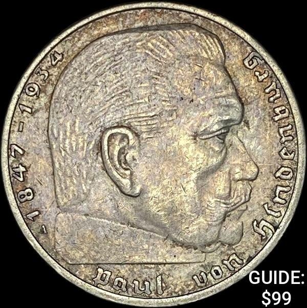 1939-A Germany Silver 2 Reichsmark CLOSELY UNCIRCULATED