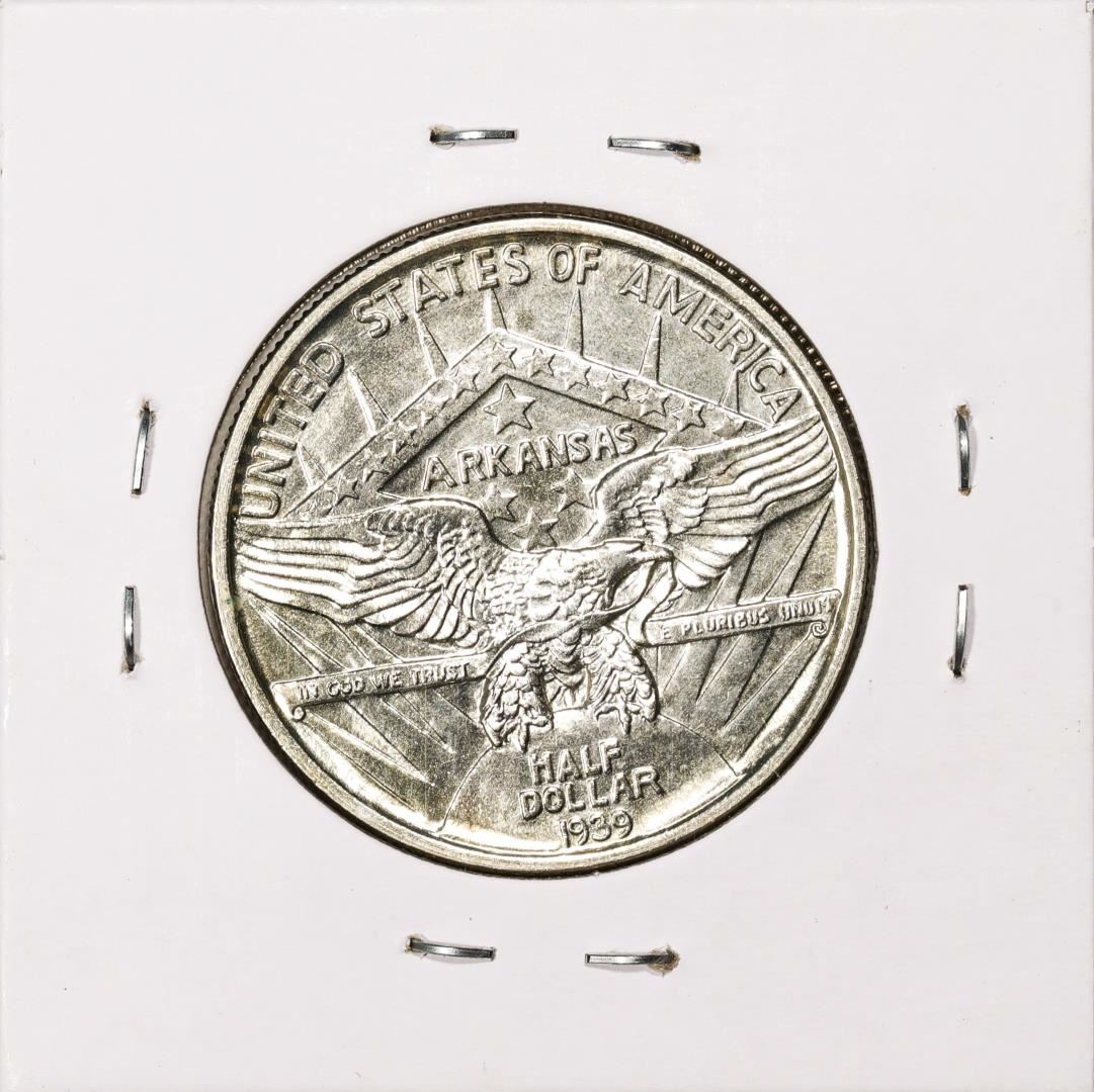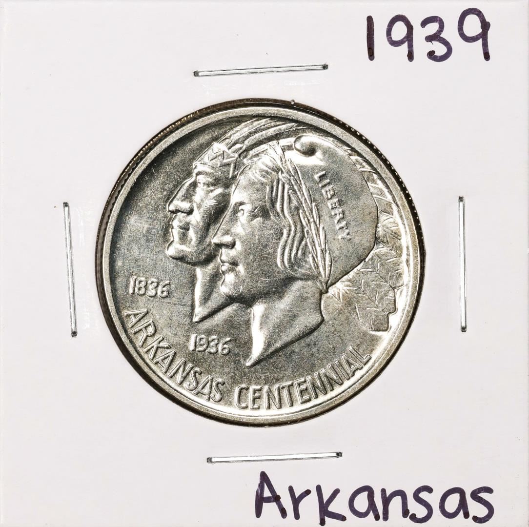 One 1939 Arkansas Centennial Commemorative Half Dollar Coin.