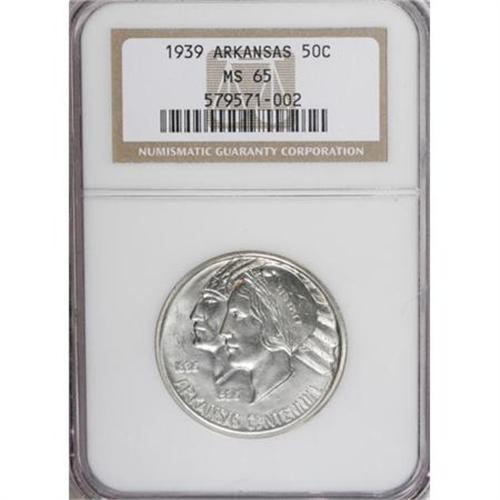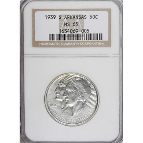 <B>1939 Arkansas PDS Set MS65 NGC and PCGS.</B></I> The set includes: <B>1939 MS65 NGC,</B></I> nearly untoned, meticulously struck, inconspicuous contact on the Indian's chin; <B>1939-D MS65 PCGS,</B></I> occasional golden-russet freckles, sharply struck and smooth; and a <B>1939-S MS65 NGC,</B></I> untoned and well struck with clean cheeks. A low mintage set.<BR><I>From The Silver Fox Collection.</B></I><BR><BR><b>Shipping:</b> Coins & Currency (<a target="_blank" href="http://www.heritageauctions.com/common/shipping.php">view shipping information</a>)