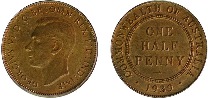 1939 Australian KGVI Half Penny - PCGS MS 64RB