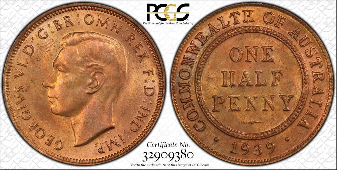 Equal highest graded, 1 of 3. Certainly one of the nicest KGVI Half Pennies we have handled.