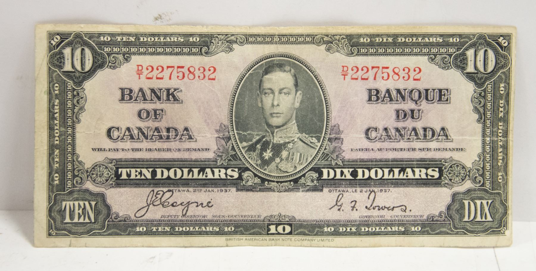 1939 CANADIAN $10 BANK NOTE D/T2275832