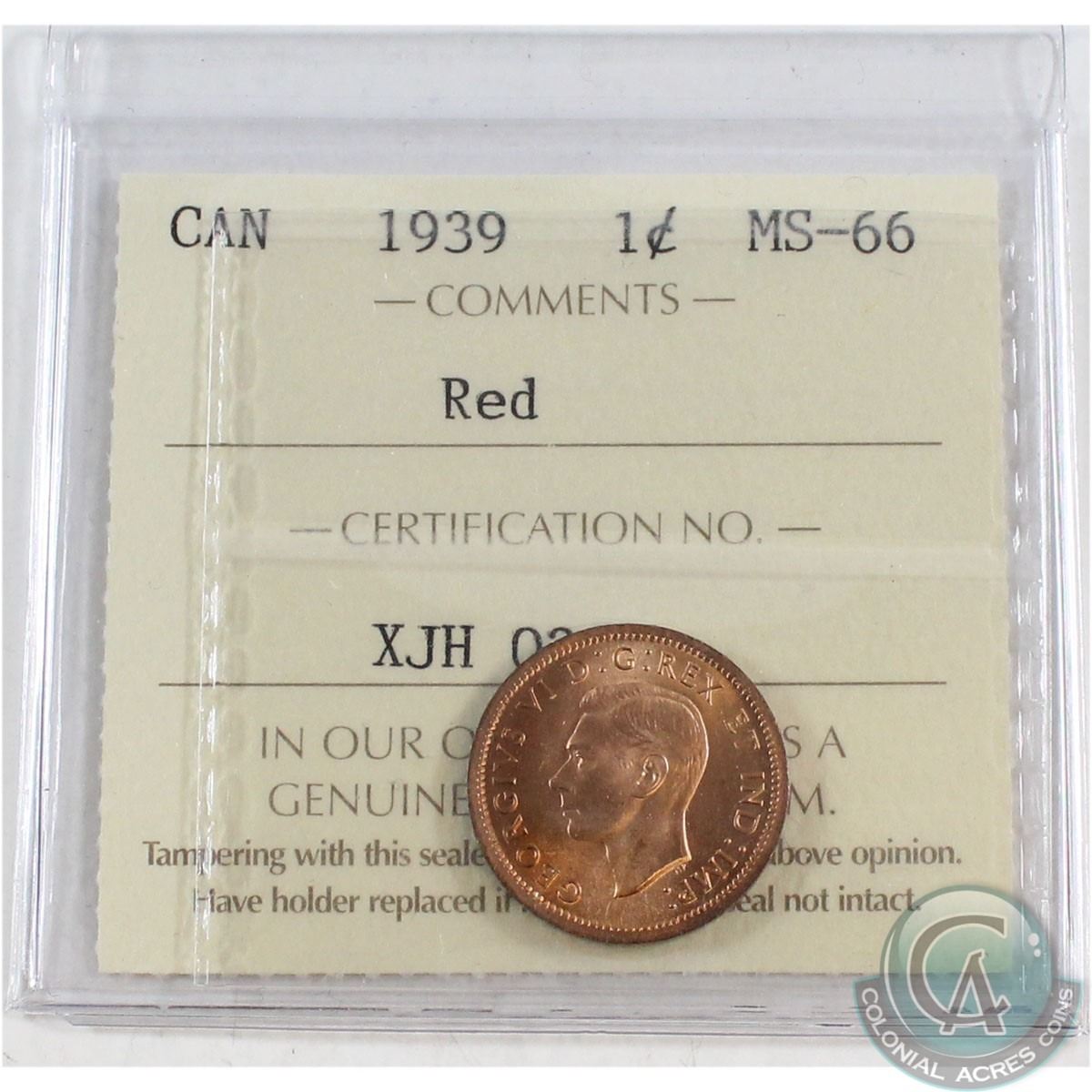1939 Canada 1-cent ICCS Certified MS-66 Red