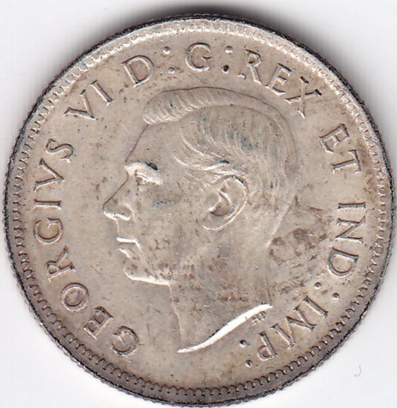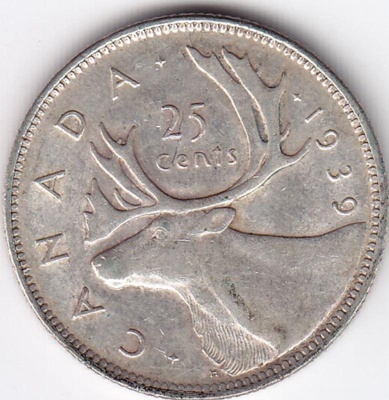 1939 Canadian Silver 25-Cent Quarter Coin - Almost Uncirculated with Some Environmental Damage