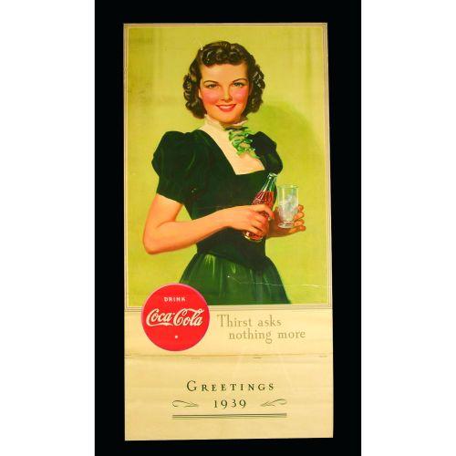 1939 Coca Cola Calendar, original band and full pad. Some tears at 12 and 4:00 otherwise good condition. 12 X 24 1/2 inches.