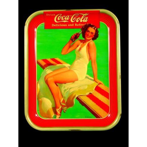 1939 Coca Cola Tin Serving Tray, couple of chips on the rim otherwise excellent condition, 10 1/2 x 13 1/4 inches.
