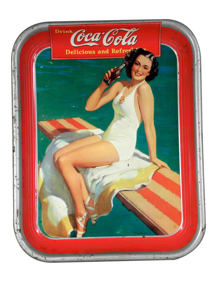 1939 Coca Cola Tin Serving Tray. Some edge ware and minor dents and scratches otherwise good condition. 10 1/2 X 13 1/4 inches.