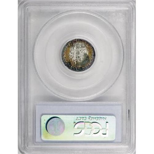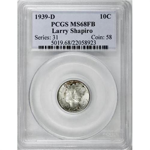<B>1939-D 10C MS68 Full Bands PCGS.</B></I> Ex: Larry Shapiro. This is a beautifully toned Superb Gem, well struck and displaying rich rainbow toning on the reverse. The colors include cobalt-blue, purple-red, olive-brown, and sea-green. The obverse is mostly brilliant, but shows a slight degree of speckled russet-red patina. Population: 83 in 68 Full Bands, 14 finer (3/08).<BR><BR><B>Coin Engraver:</B> Adolph A. Weinman<BR><BR><b>Shipping:</b> Coins & Currency (<a target="_blank" href="http://www.heritageauctions.com/common/shipping.php">view shipping information</a>)